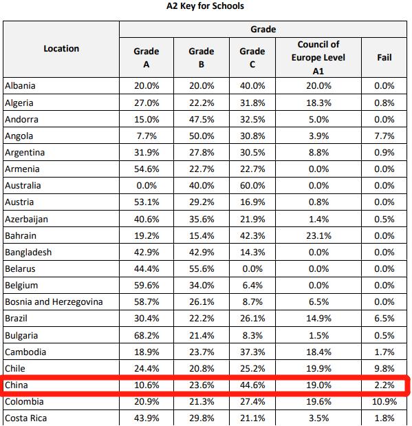 为了防止大家为了宝宝急切地被忽悠瘸了,我们来看看剑桥官方的真实过级率。——