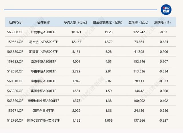 昨天,这两个中证A500ETF的净流入均超过10亿元