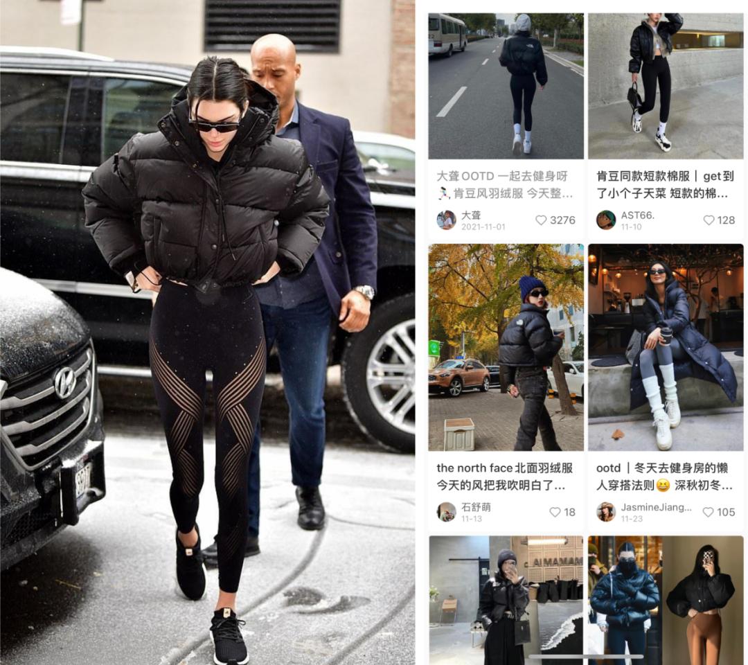 女孩子有羽绒服「长度超长,短超短」的两极化。 长度直接通过脚踝,实现冬季瑜伽裤的自由,不再有冻腿的烦恼; 短则仍然是从美国的Kendall开始,盖过肚脐眼,突出翘腿和长腿。
