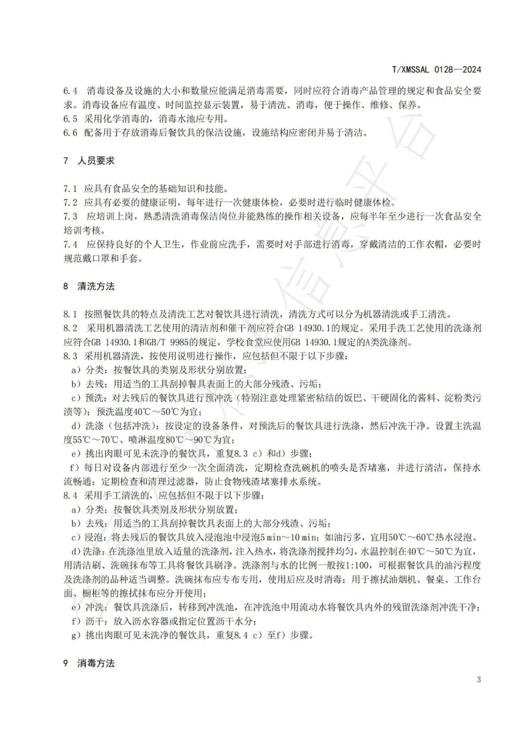 另外,《规范》还特别强调了清洁阶段的重要性。这个环节通常很容易被忽视,但是它直接关系到餐具在消毒后到使用前的卫生安全。因此,《规范》对清洁方法进行了详细的规范,如清洁频率和清洁方法,有效降低了餐具二次污染的风险,并指出了长期闲置餐具需要重新清洁消毒的重要性。