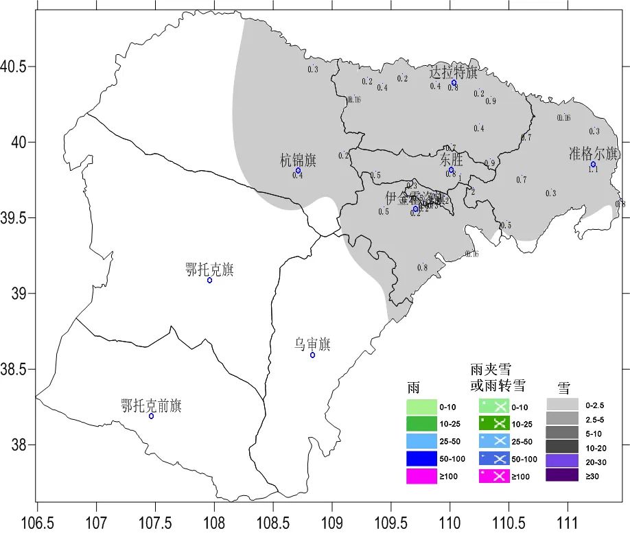 【鄂尔多斯市气象台】2024年11月27日07时发布下雪实况信息:从昨晚到晚上,我市北部地区出现了小雪天气,准格尔旗准格尔召2.0mm。各旗区政府所在地降雪量如下(单位:mm):