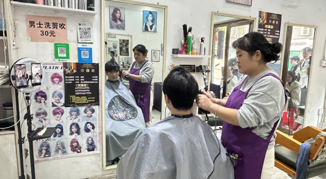 但是在晓华这里大家看到的却是一家二三十平的小理发店,偶尔曝光过多的视频背景。