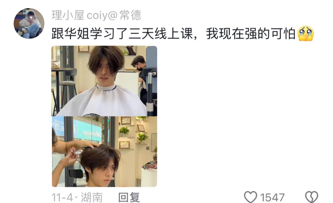 在全国范围内,晓华的剪发直播也成为了美发师的集体网络课程,与晓华一起学习理发技术的同行,现在纷纷称自己强得可怕。