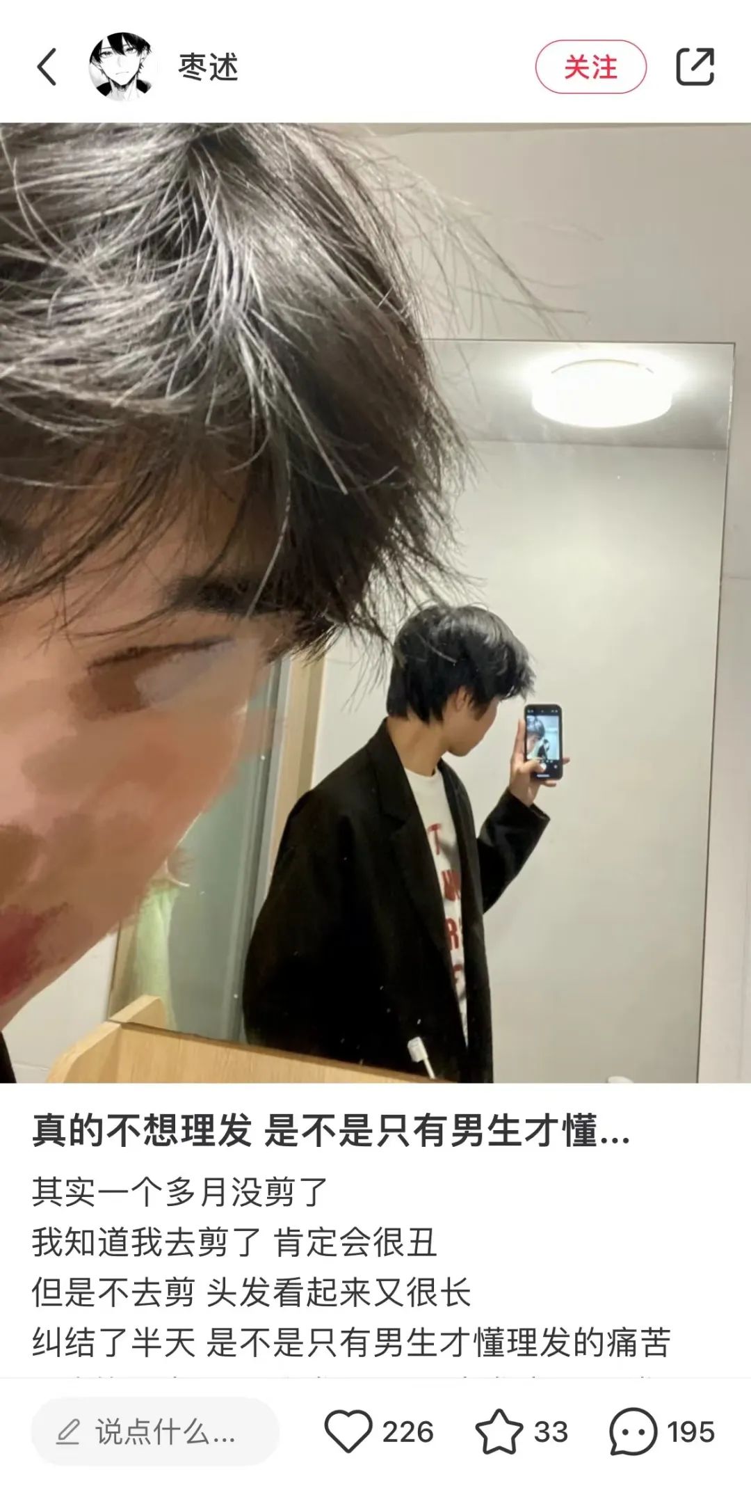 对大众来说,剪头发越来越像是一种功能性的刚需,头发长了遮眼要紧,太久不剪戳脖子,剪头发只是每个月的例行公事。