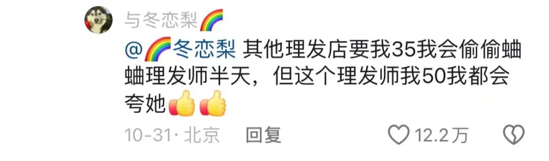 与需要发型的顾客相反,别说30块钱,“50我都会夸她”。