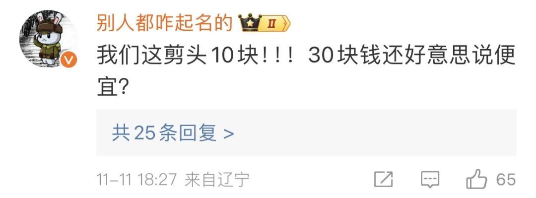 不过,批评家们完全没有想到,最近甚至有网友感慨道:“30块剪头发不便宜!十块钱就够了。”