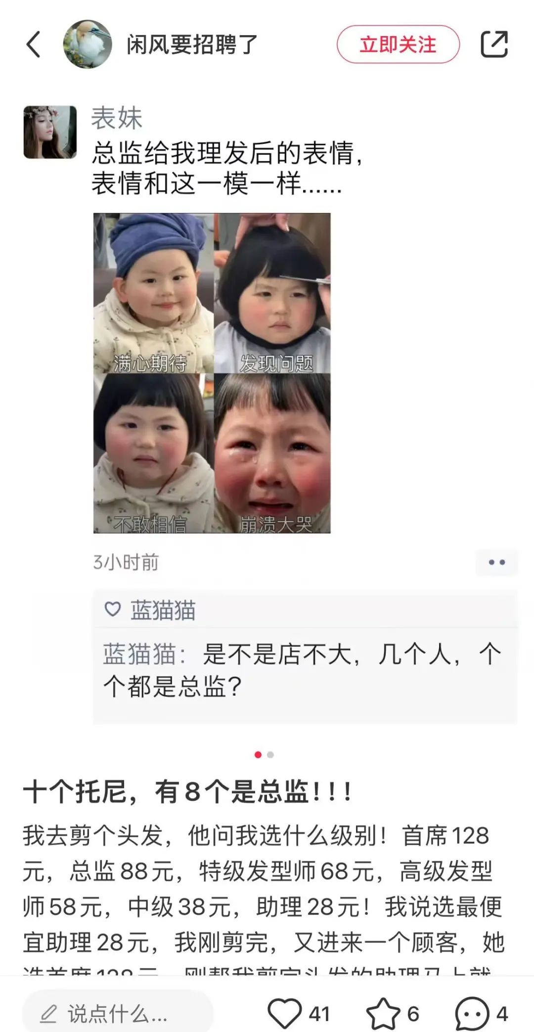 现在有些高端美发沙龙套路,让人很累,好像不搞这些虚头巴脑的人就不会剪头发。