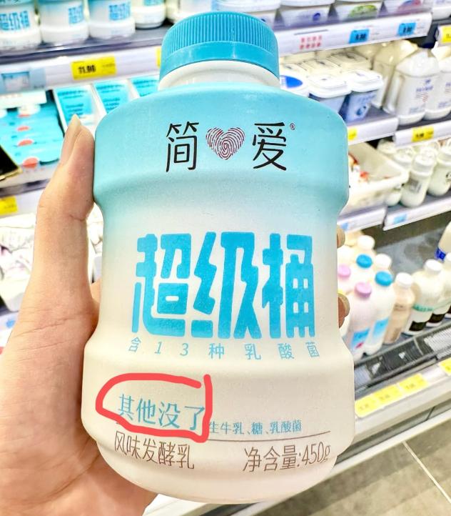 比如前段时间讨论的简爱酸奶“味道像消毒剂”,包装了生牛奶、糖、乳酸菌旁边的四个大字“别的没了”。你看的时候觉得这个酸奶真的是0加好牛奶,其实[其它的消失]只是朴诚乳业在2017年注册了一个成功的商标。得知真相的网友沉默了。因为这样一个欺骗性的商标,简爱也注册了:0%、1%、2%和4%。