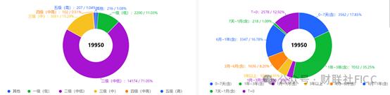 从代销产品的角度来看,目前分销的理财产品主要是中低风险、投资期长的产品。根据法律金融的统计,19950年所有代销产品中,风险等级为一级和二级的总数占82%,投资期超过一年的总数占40%。