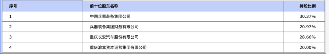 目前,长安汽车金融是一家国有控股金融机构,其股东包括中国武器装备集团、重庆长安汽车股份有限公司、武器装备集团金融公司和重庆余福资本运营管理集团。其中,前三家分别持有30.37%的股份、28.66%、20.97%。