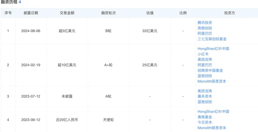 可见,在AI模型领域,投资者对技术水平和市场前景强大的创业公司表现出浓厚的兴趣。Kimi在不到两年的时间里完成了四轮融资,其中A 轮换融资甚至超过10亿美元,在完成B轮融资后,估值也达到了33亿美元。