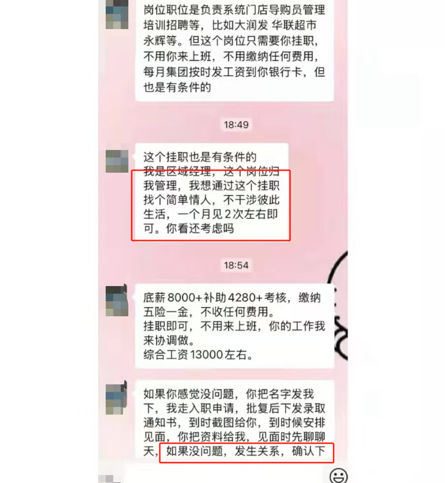 此前,据《潇湘晨报》报道,11月26日,有网友反映,立白科技集团一区域经理以招聘为由找情人。聊天截图显示,经理介绍,他只需要挂职,不需要工作。“这个职位是我管理的。我想通过这份工作找到一个简单的爱人,而不是干涉彼此的生活。我一个月可以看两次左右。”据介绍,这个职位的综合工资在13000元左右。