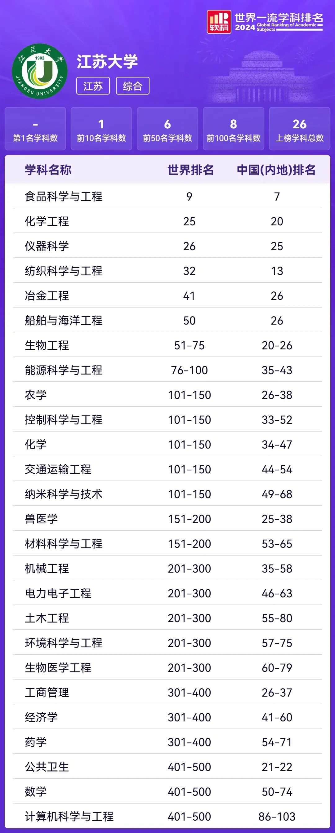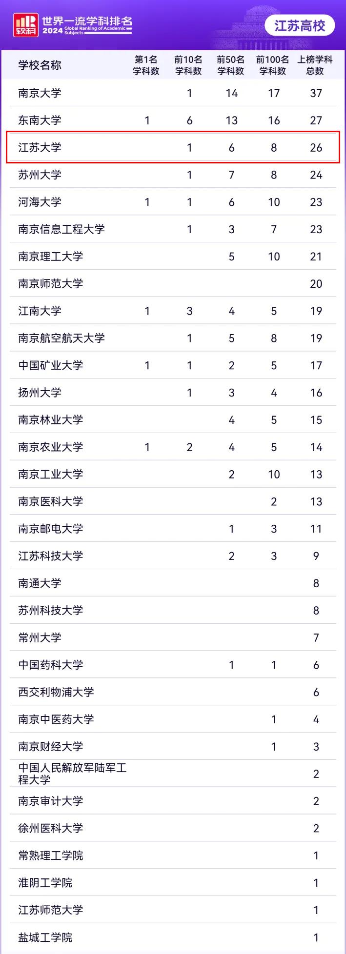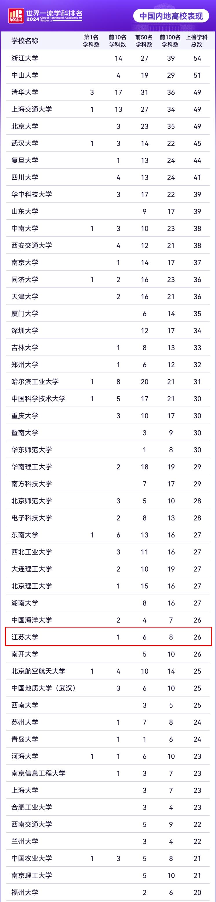 江苏省大学共有26个学科上榜,上榜学科总数并列内地大学第34位,较去年上升4位。