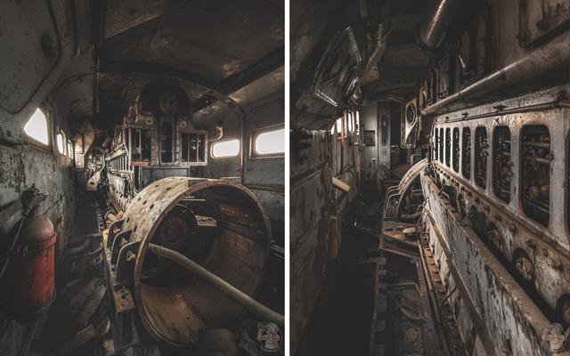 我们从驾驶舱出来,越过剩余的制动压缩机和前面分配减速器的遗骸。