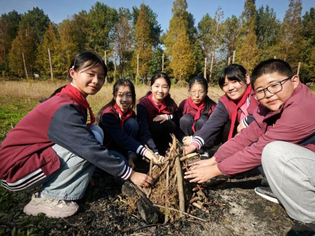 在橙蓝色国际森林营,学生们体验了古代烤红薯。从篝火、烧炭火到烤红薯,六个学生一起学习,一边尝试。一切准备就绪后,只有红薯的皮肤逐渐变黑,甜味从脾脏进入胃。7(1)班的学生王漫妮感叹:“‘甜蜜’很费时间,但也感受到了劳动的快乐。”就用树枝和木头搭篝火而言,有技巧使用多少树枝和木头,以及放置顺序。