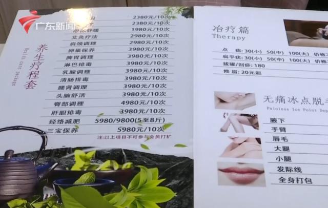 根据公示的价目表,除美发外,该店还提供面部美容、养生疗程等多种项目,一次性价格集中在一次性价格上 300 到 600 元之间。