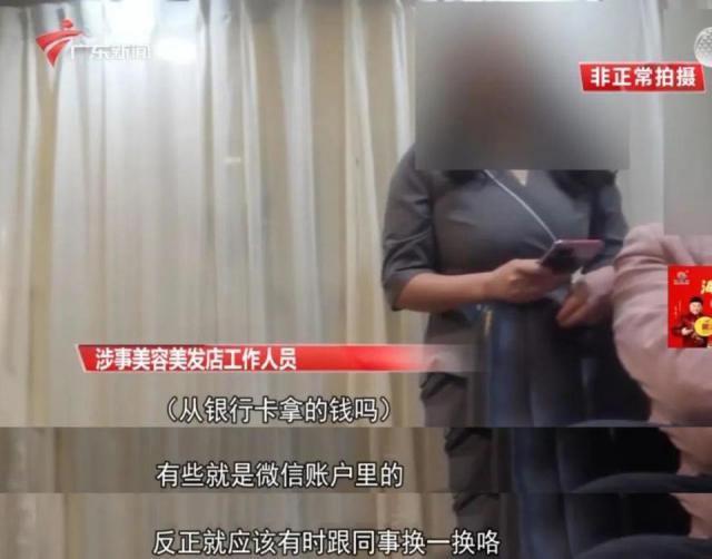 这些十万元,究竟消费了什么?十一 月 26 日本,记者陪同梁先生来到相关美容院。美容师“紫萌”说,这笔钱大部分是梁先生妈妈在店里花的,也有一部分是为了帮她提取现金。但是当记者询问是否有提现记录时,对方吞吞吐吐。
