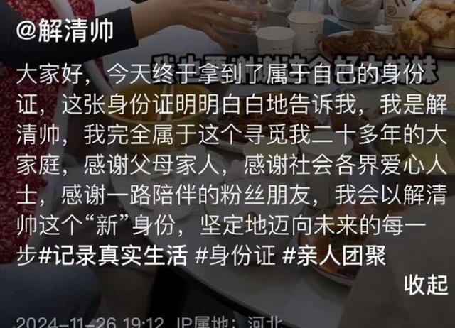或许对许多人来说,身份证只是证明自己的身份证件,但是对于解清帅来说,这张身份证等着他们。 20 等了很多年。