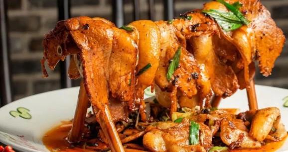 假设连山回锅肉代表着“创新”,另一道广汉名菜——广汉缠丝兔,则体现了“守正”。形状完整的兔子用绳子从颈部缠绕到后脚,呈螺旋状盘绕,腹部紧绷,体表棕褐色或红棕色,味道浓郁,适合咸味。制作缠丝兔是一门古老的工艺,即使在今天大规模生产的今天,它的传统工艺依然存在。除最后一道工序烘烤机器外,早期选材、腌制、盘绕等均为人工操作。