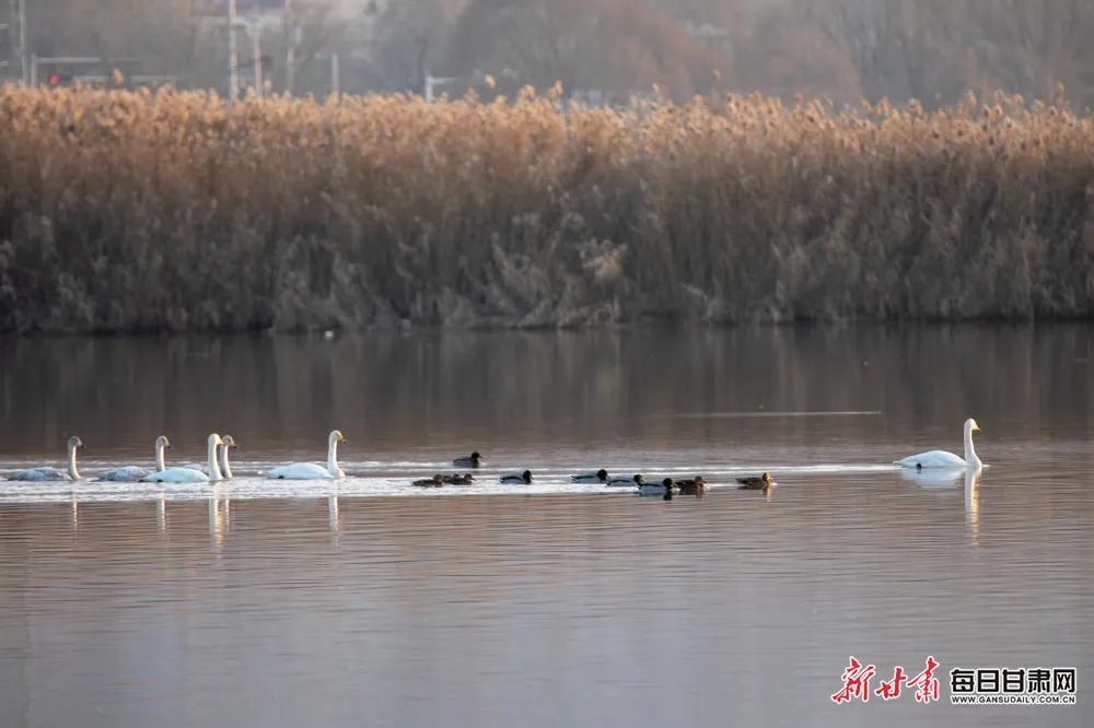 近年来,兰州市大力推进国内黄河流域综合治理,不断改善生态环境,为白天鹅、凤头、大雁、绿翅鸭等候鸟创造了一个合适的生活环境,吸引他们过冬。