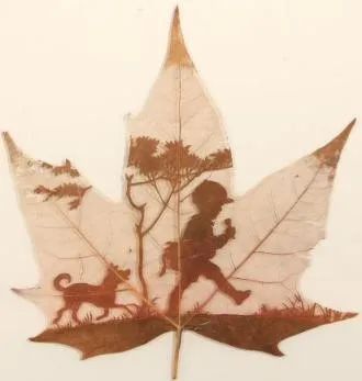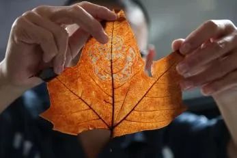 据说落叶归根,而叶雕艺术却让枯叶重生。