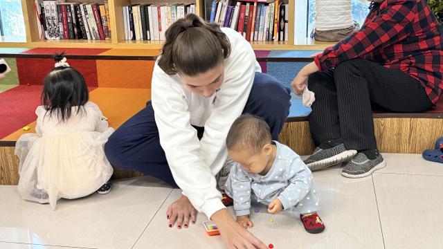本课程的成立,源于水河泾街道服务办公室对社区婴幼儿活动需求的深刻洞察。5Q 婴幼儿创意游戏课程涵盖音乐、艺术、语言、逻辑思维和身体锻炼。通过精心设计的互动游戏和活动,婴幼儿可以在游戏中自然学习和成长。外籍教师的参与不仅为本课程增添了国际元素,而且通过他们的专业指导,让孩子接触到不同的文化背景和学习环境,从而开阔视野,培养国际思维。家长的参与也是课程中的一大亮点。通过鼓励家长和孩子一起参与游戏,课程增强了亲子互动,帮助家长在陪伴中更深入地了解孩子的成长过程。课程负责人表示,这种亲子合作不仅增进了家庭关系,也为社区成员之间的交流提供了新的纽带。