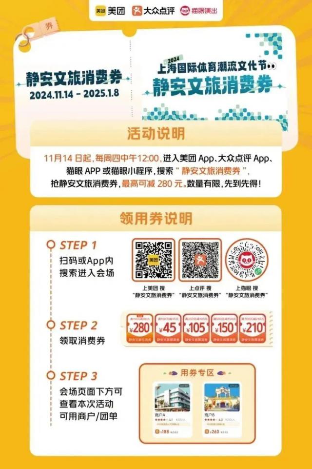 2024 年 11 月 2 日至 12 月 15 日,2024 举办上海国际体育潮流文化节。为充分发挥品牌引领作用,增强消费活力,创新消费模式,静安区发布2024 上海国际体育潮流文化节静安文化旅游券。