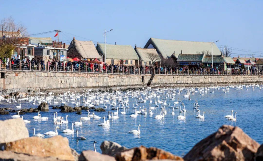 烟墩角村是典型的胶东渔村,因其美丽的自然风光、丰富的海洋资源和独特的文化传统而闻名。每年冬天,成千上万只天鹅飞到这里栖居,使烟墩角村成为著名的“天鹅村”。