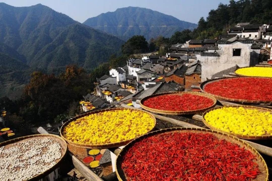 这是一座典型的徽派古村落,以其独特的晒秋文化和美丽的自然风光而闻名。这个村庄位于石耳山北部的山坡上,海拔400至500米,由于地形限制,房屋依山而建。 ,高低错落,形成了独特的阶梯式村庄格局,被形容为“布达拉宫”。