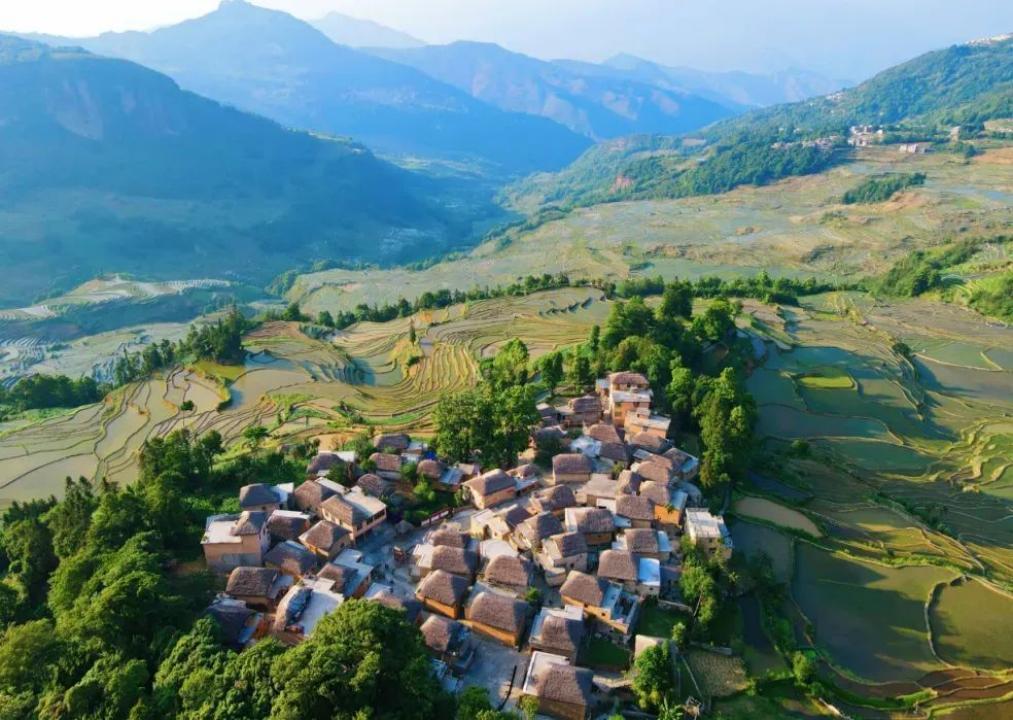 阿者科村是哈尼族的典型传统村落,位于哀牢山脉的梯田上。村庄建在山上,层层梯田与哈尼族的蘑菇房相得益彰,形成了独特的乡村景观。