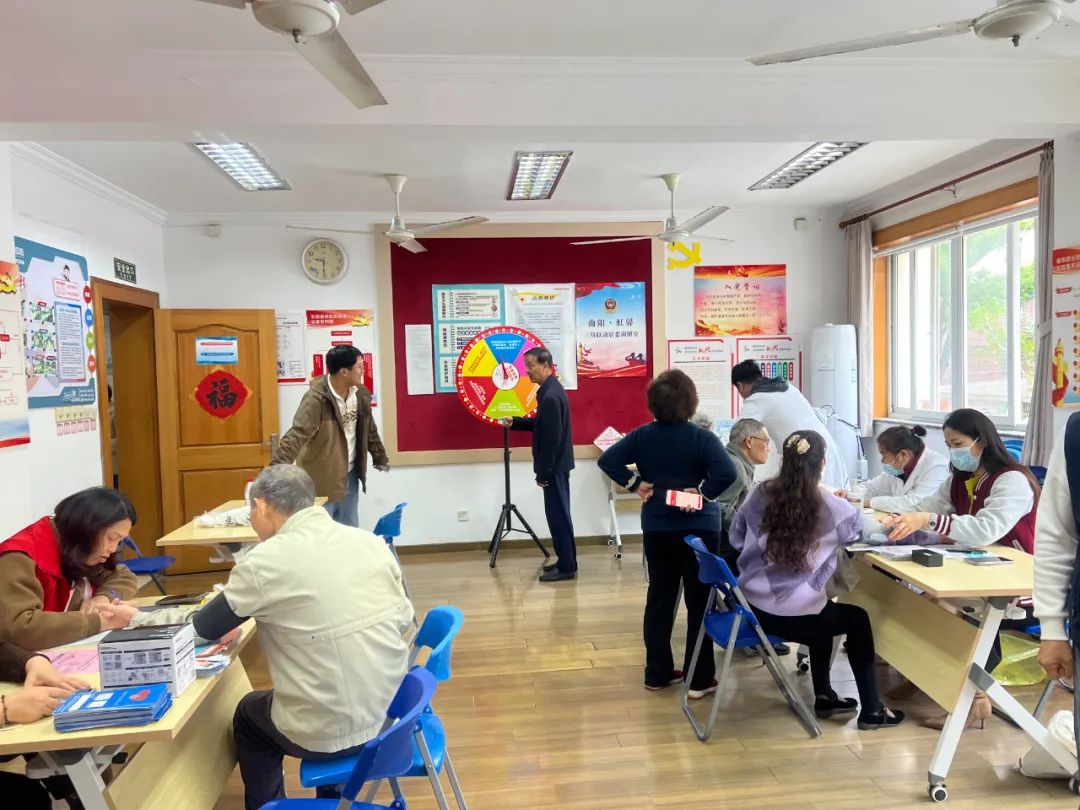 十一月二十五日,曲阳路街道双东小区所在的东四居民区新时代文明实践站展开了热闹非凡的活动 “小虹车文明实践” 在社区活动中,居民不仅在这里体验了免费理发、养老服务咨询、颈肩按摩等社区便民服务,还积极参与了“文明实践大转盘”互动答题活动。