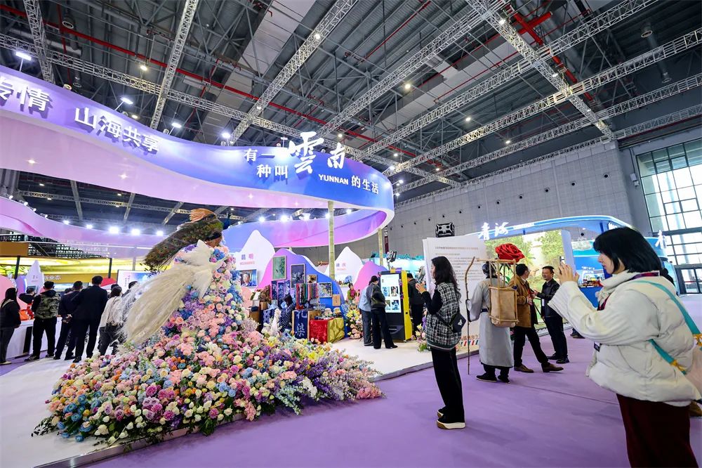 云南展区观展群络绎不绝的群体络绎不绝。 胡妤雅 摄