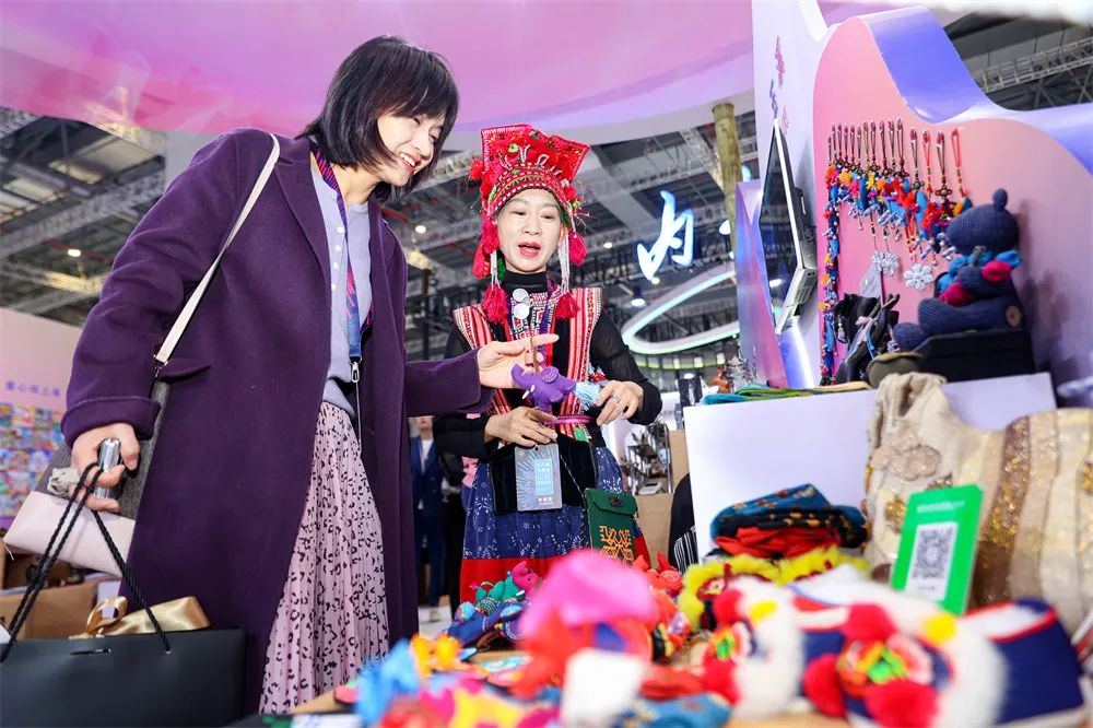 观众选购玉溪彝族刺绣文创产品 胡妤雅 摄