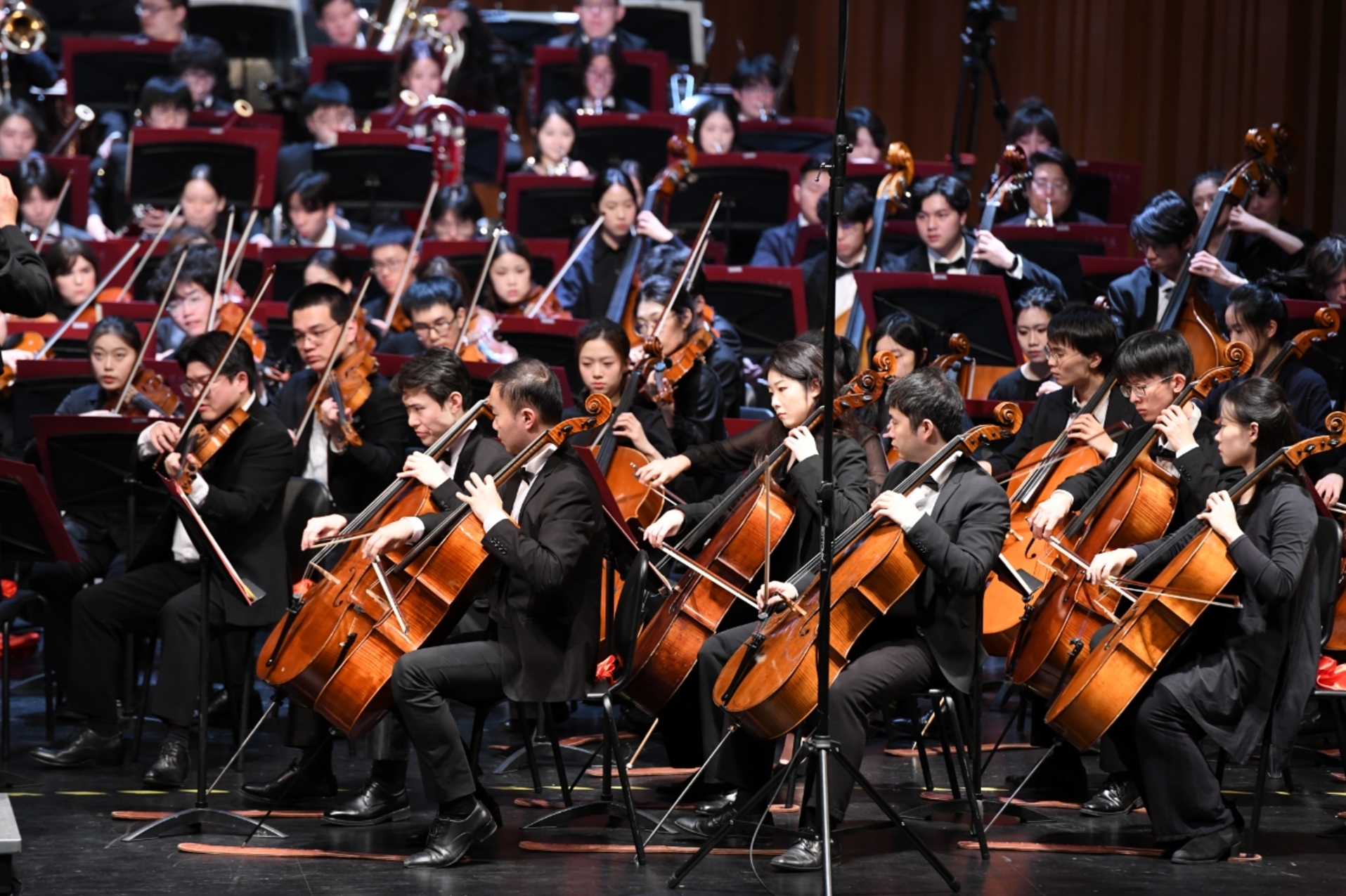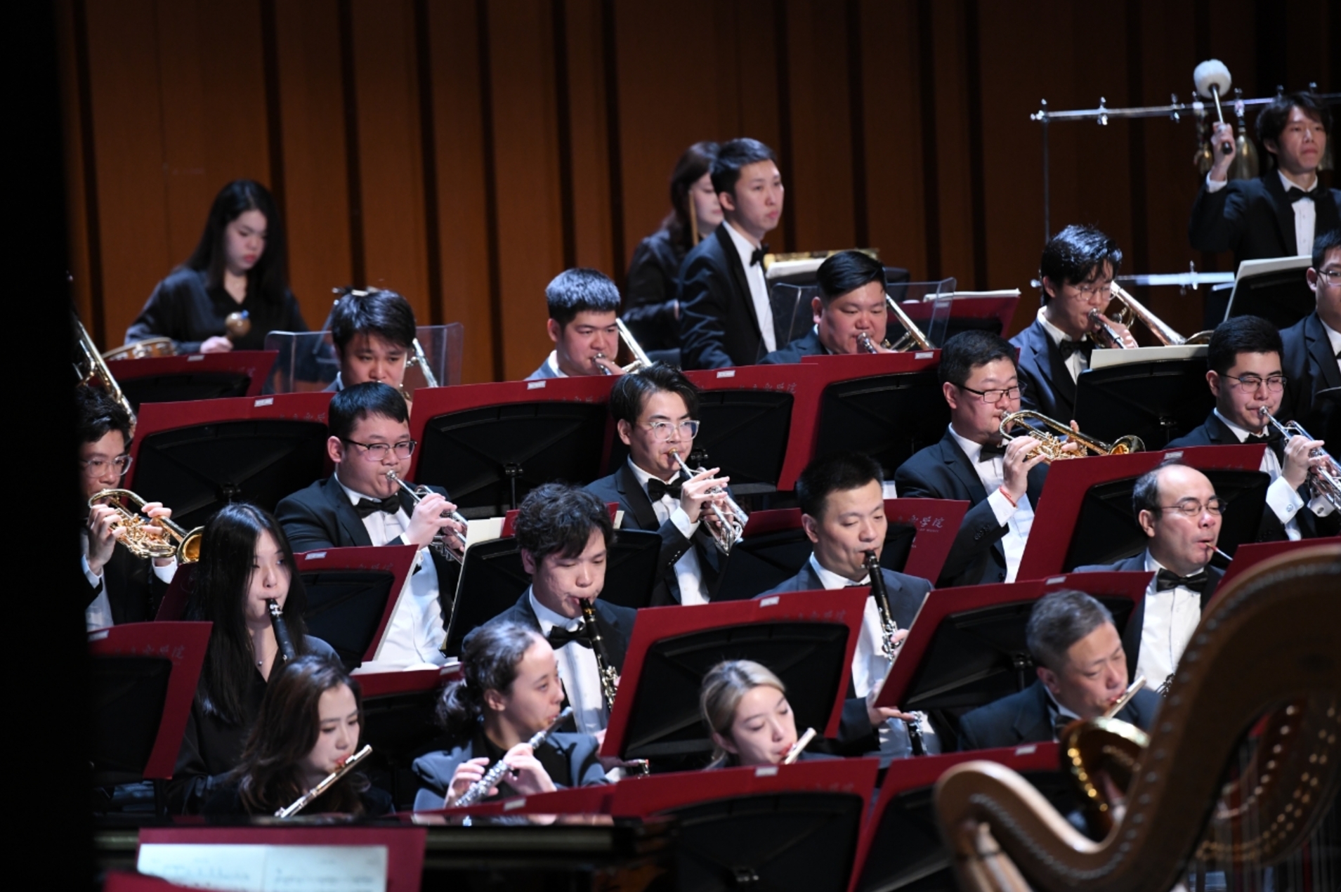 张国勇教授与上音交响乐团携手,管弦系主任刘照陆、管弦系教授徐惟听、郝杰、顾聪、李德钦、朱玮、马勇、巢晖、陈坤等主要教师坐在乐团首席,张润邈、宋雨晨、沈子钰、耿文彬等上音新星,以及今年刚刚回到母校的圆教授韩小明也加入了表演团队。