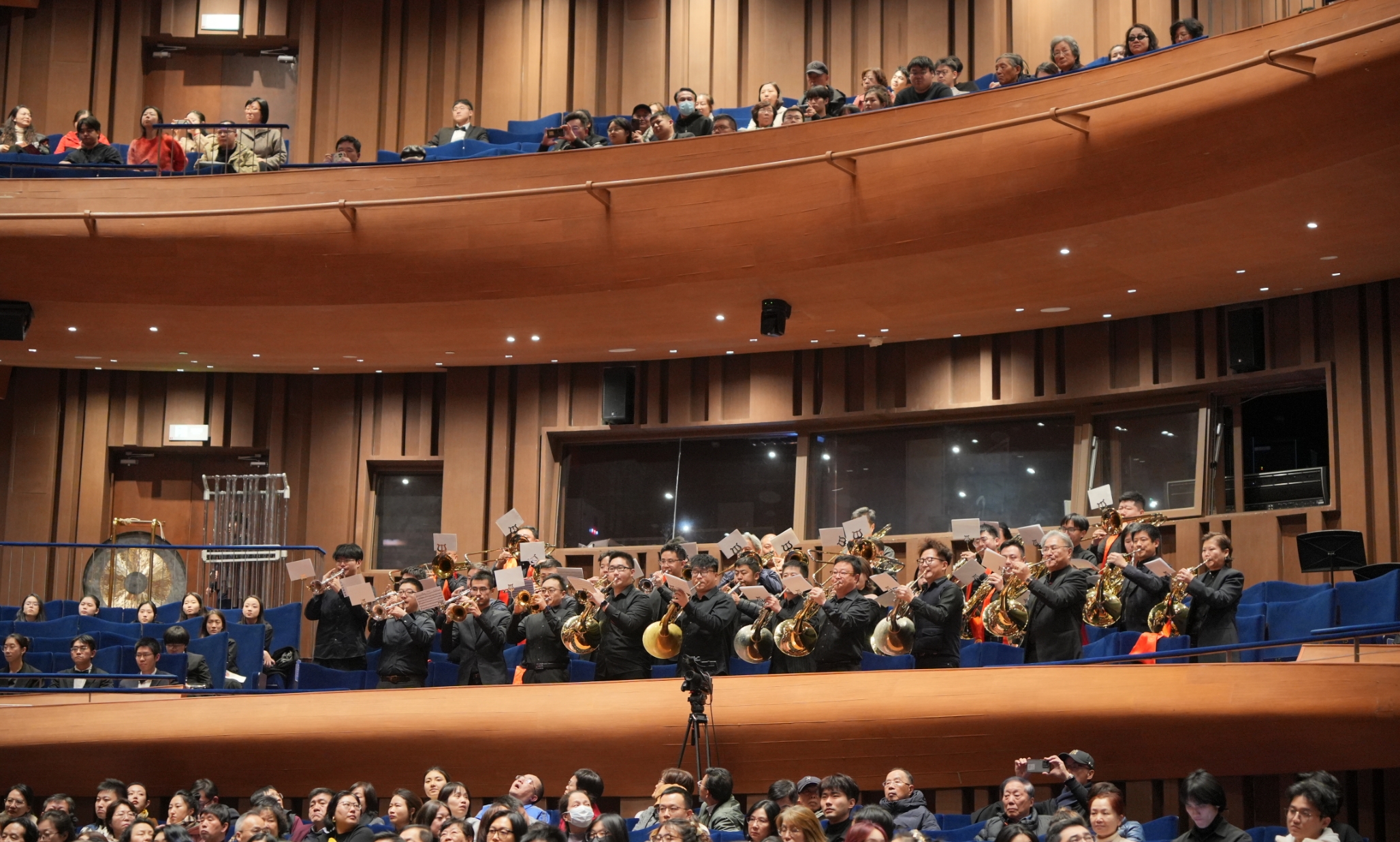 音乐会在响亮的开场号角声中拉开序幕。上音作指的是专门聘请的教授程邈担任号角指挥,97名上音交响管乐团的学生齐声演奏《红旗颂》《奥林匹克号角》《查拉图斯特拉说什么》。