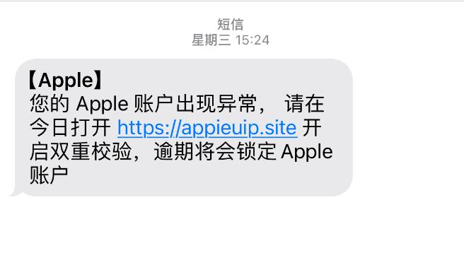 十一月十三日晚上,在深圳工作的小亚(化名)收到一条短信,短信提示小亚的Apple账户出现异常,需要点击链接打开双重验证。