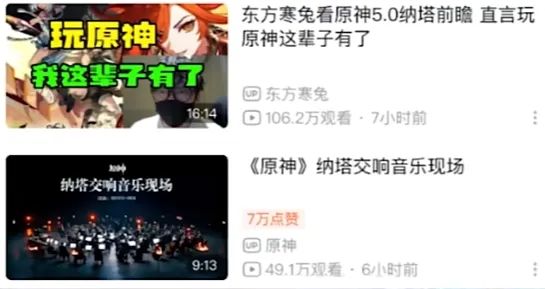 然而,仅仅因为米哈游攻击者创造的负面词汇“玩原神这辈子就有了”,这段视频就在短短7个小时内获得了百万播放量,甚至超越了同期拥有2000万粉丝的《原神》官方账号发布的《纳塔交响音乐现场》的数据。