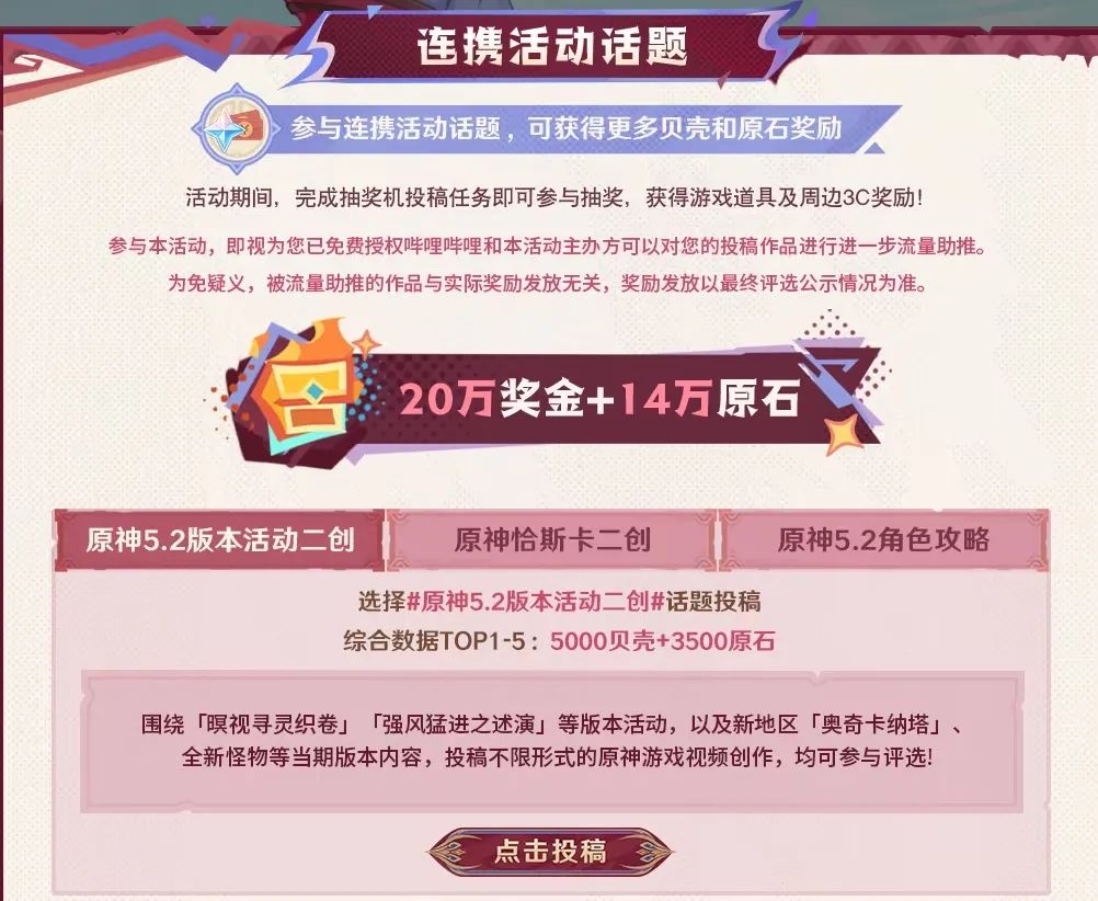 十一月二十日,米哈游旗下的游戏《原神》像往常一样在哔哩哔哩发布了5.2版本的创作者激励计划。