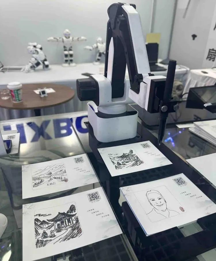 一个很受欢迎的AI绘画机,访问了ChatGPT 4o,机器人可以通过一句话或几个关键词独立生成和绘制图片,也可以通过拍照生成机器人可以识别的线稿图片,然后在卡片或名片上未端绘制。现在市场上2.1万台的价格,年产出率在2000台左右。已经应用于欧美市场。