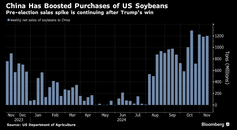 外国媒体:自美国大选以来,中国继续购买美国大豆。