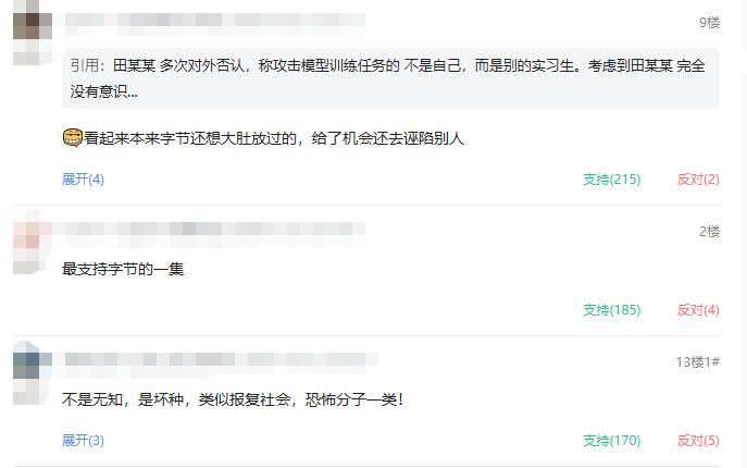 起初,字节跳动并未找田某某追究责任,只是将他解雇,并将其行为,同时交给行业联盟和学校,交给学校处理。