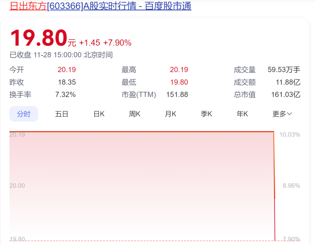 日出东方、东方智能制造、英联股权、魅视科技、贝斯达克、瑞斯康达、东方创业等多只高端股票在尾盘跳水,其中日出东方、东方智能制造集合竞价爆盘。日出东方之前股价暴涨。11月4日至11月27日,有14个涨停。在今天的尾盘爆炸之前,也有每日限额。