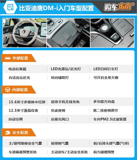 2025 款比亚迪唐 DM-i 入门级车型配置丰富,如电动后备箱、自适应远近光、转向辅助灯、可开启全景天窗、前排手机无线充电等。,这足以满足基本的家庭需求。这次不推荐入门级版,根本原因是性价比更高的车型。