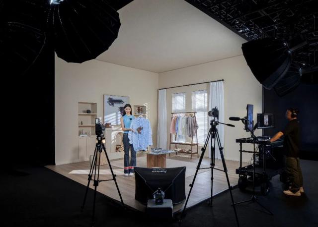 推荐佳能在品牌服装直播间使用。 EOS R5 C。它具备 8K 超采样的精细画质和广阔的动态范围,并且支持 Canon Log 3 自定义定义直接载入机内。 LUT 文档。该功能保证了服装色彩在直播间的精确恢复,提高了视觉效果的高级感。组合 RF15-35mm F2.8 L IS USM 通过光学效果,广角镜头可以自然地拉长腿部比例,使模特看起来更苗条优雅。F2.8 大光圈还有助于突出主体,达到电影般的细腻质感。