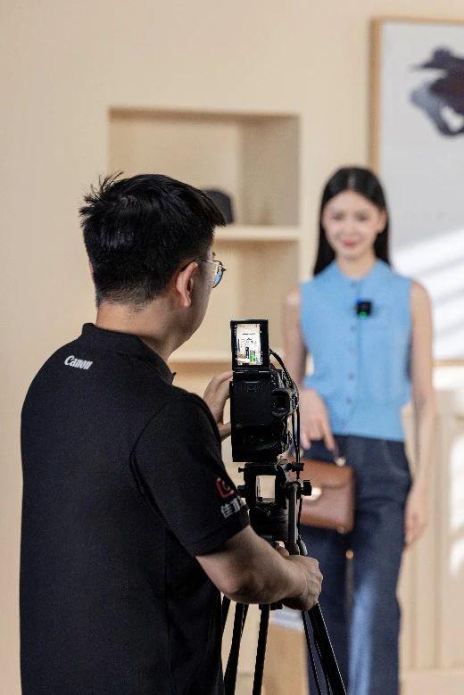 推荐使用佳能特写机位。 EOS R50,组合 RF 24-105mm F4 L IS USM 镜头。通过商品演示模式,对焦速度明显提高,服装技术的细节和材料清晰呈现。这个方案可以轻松操作,不需要导游平台,提高了直播间的数据转化能力,快速赋能品牌。