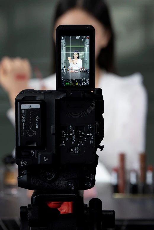 佳能用于特写机位 EOS R50,商品演示模式可以提高对焦速度,保证产品细节和成分表的清晰呈现。双位置转换不需要广播平台,操作简单,增强了观众的参与度,增加了用户的停留时间。