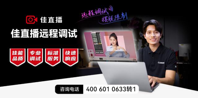 与此同时,客户在直播过程中遇到技术问题,可以随时预约“佳直播远程调试服务”。这种服务具有“佳能品质”、“专业调整”、通过专业技术团队和自主研发软件,实现“标准服务”和“快速响应”四大亮点,实现全国范围的无差别覆盖。服务内容包括色彩、灯光、画质、音频等。,确保在直播中争分夺秒的高效调整,打破距离限制,为用户提供经济高效的一站式技术支持。