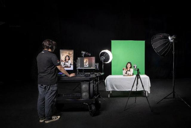 佳能用于特写机位 EOS R50,组合 RF 24-105mm F4 L IS USM 变焦镜头可以展示主播的特写和化妆细节,同时可以清晰地展示美容产品的颜色和材质。在商品演示模式下,可以进一步提高对焦速度,让商品展示更加流畅。双位置转换不需要直播平台,保证直播节奏顺畅,提高产品讲解效率。