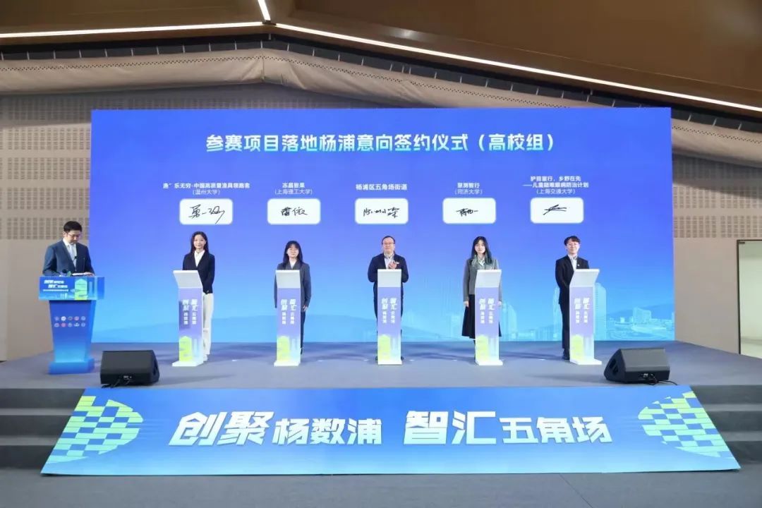 通过三个月的系列赛事和比赛训练营,杨浦的创新创业企业和优质的商业环境吸引了多支参赛队伍。现场还举行了参赛项目落地杨浦意向签约仪式。五角场街道与四家企业组和四家高校组的代表现场签署了项目建设杨浦意向书。