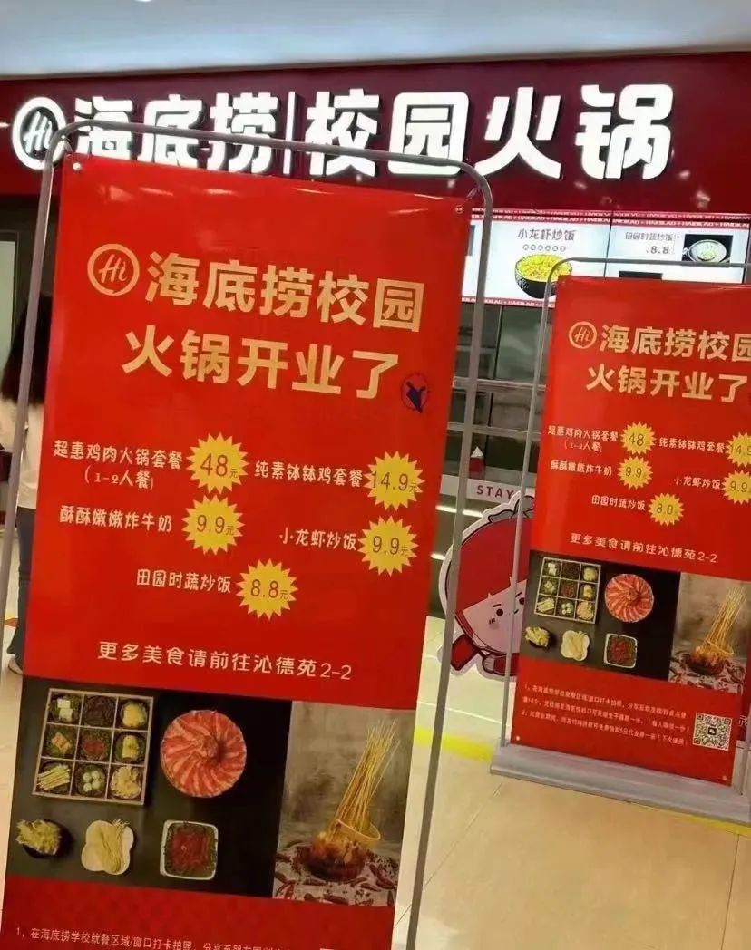 比如海底捞的校园火锅,不仅降低了各种菜品的价格,还推出了多种校园特色菜,包括火锅套餐、钵钵鸡、小吃等。